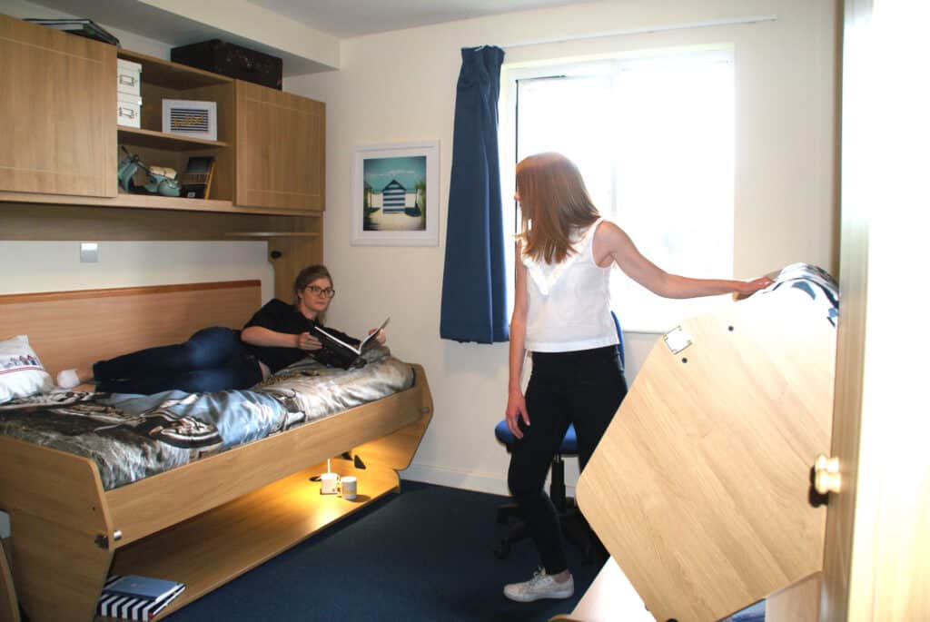 StudyBeds were used to convert medium sized rooms to twin rooms. These proved very popular with International students who were keen to share but at a lower room rate.